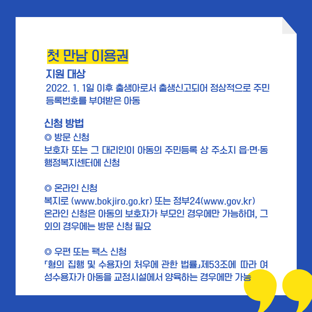 2022년 부터는 "첫만남이용권"의 혜택을 받을 수 있습니다.