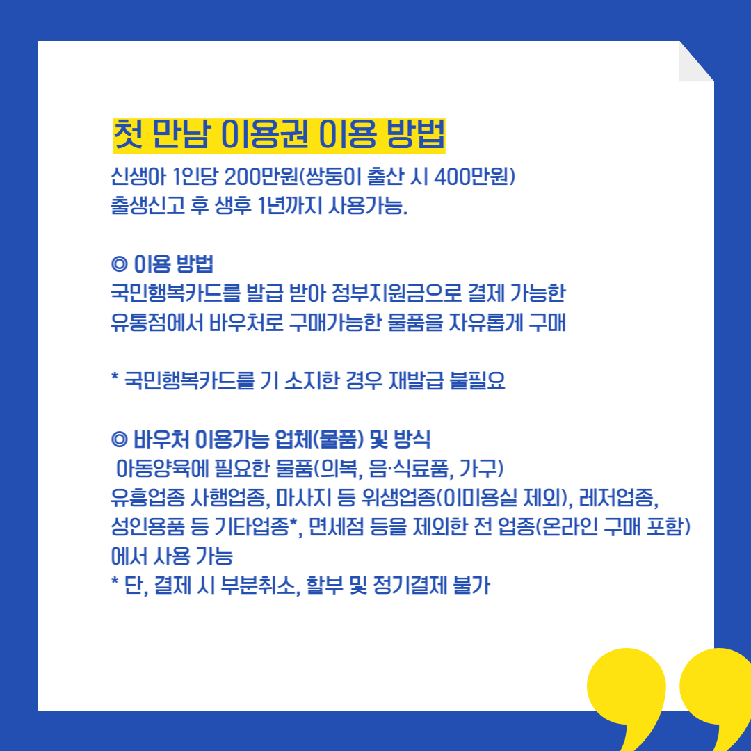 2022년 부터는 "첫만남이용권"의 혜택을 받을 수 있습니다.